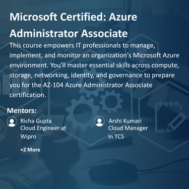 This course is designed for IT professionals who want to gain expertise in managing, implementing, and monitoring an organization's Microsoft Azure environment. The curriculum covers the essential services across the core pillars of an Azure deployment: compute, storage, networking, identity, and governance.