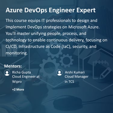 The Microsoft Certified: Azure DevOps Engineer Expert (AZ-400) course is designed to equip IT professionals with the advanced knowledge and skills necessary to design and implement DevOps strategies on Microsoft Azure. Candidates will learn to unify people, process, and technology to enable the continuous delivery of value, mastering practices like continuous integration (CI), continuous delivery (CD), infrastructure as code (IaC), security, and monitoring.