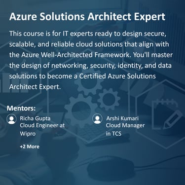 The Microsoft Certified: Azure Solutions Architect Expert course prepares candidates to be subject matter experts in designing secure, scalable, and reliable cloud solutions. This role involves advising stakeholders and translating business requirements into technical designs that align with the Azure Well-Architected Framework and Cloud Adoption Framework for Azure.