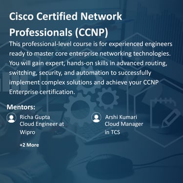 This is a professional-level course designed for experienced network engineers ready to master the core technologies of enterprise networks. Through in-depth lectures, hands-on lab exercises, and real-world case studies, you will learn to implement, manage, and troubleshoot complex enterprise networking solutions for modern infrastructures. The course covers advanced routing, switching, security, network services, virtualization, and the fundamentals of network automation and programmability, preparing you for the Cisco Certified Network Professional (CCNP) Enterprise certification.