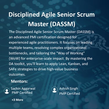 The Disciplined Agile Senior Scrum Master (DASSM) is an advanced PMI certification tailored for experienced leaders ready to scale agile beyond a single team. This credential moves past basic facilitation, focusing on the complex challenges of coordinating multiple teams and departments.
