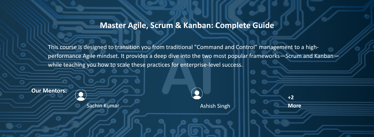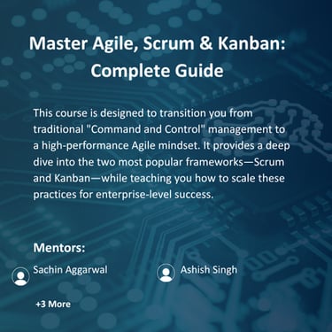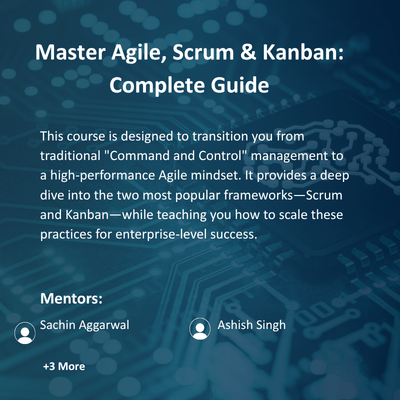 This course is designed to transition you from traditional "Command and Control" management to a high-performance Agile mindset. It provides a deep dive into the two most popular frameworks—Scrum and Kanban—while teaching you how to scale these practices for enterprise-level success.